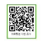 2021. 자유학년제 안내 및 사전 기초 조사 학부모님 안녕하십니까? 귀 자녀의 본교 배정을 진심으로 환영합니다. 2021학년도 1학년 학생들은 1년 동안 자유학년제 수업에 참여하게 됩니다. 자유학년제 운영을 위한 사전 기초 조사를 실시하고자 하니 귀 자녀가 설문조사에 참여할 수 있도록 지도부탁드립니다. 1. 2021 자유학년제 운영을 위한 선호도 조사 1) 목적: 학생들의 성장을 돕고 꿈과 끼를 찾을 수 있는 2021학년도 자유학년제 운영을 위해 학생의 희망을 반영한 선택 프로그램(주제선택, 예술체육, 동아리)을 개설하고자 함 2) 방법: 설문조사에 참여 - 아래 ①, ② 중 하나를 선택] ① 오른쪽 QR코드를 입력