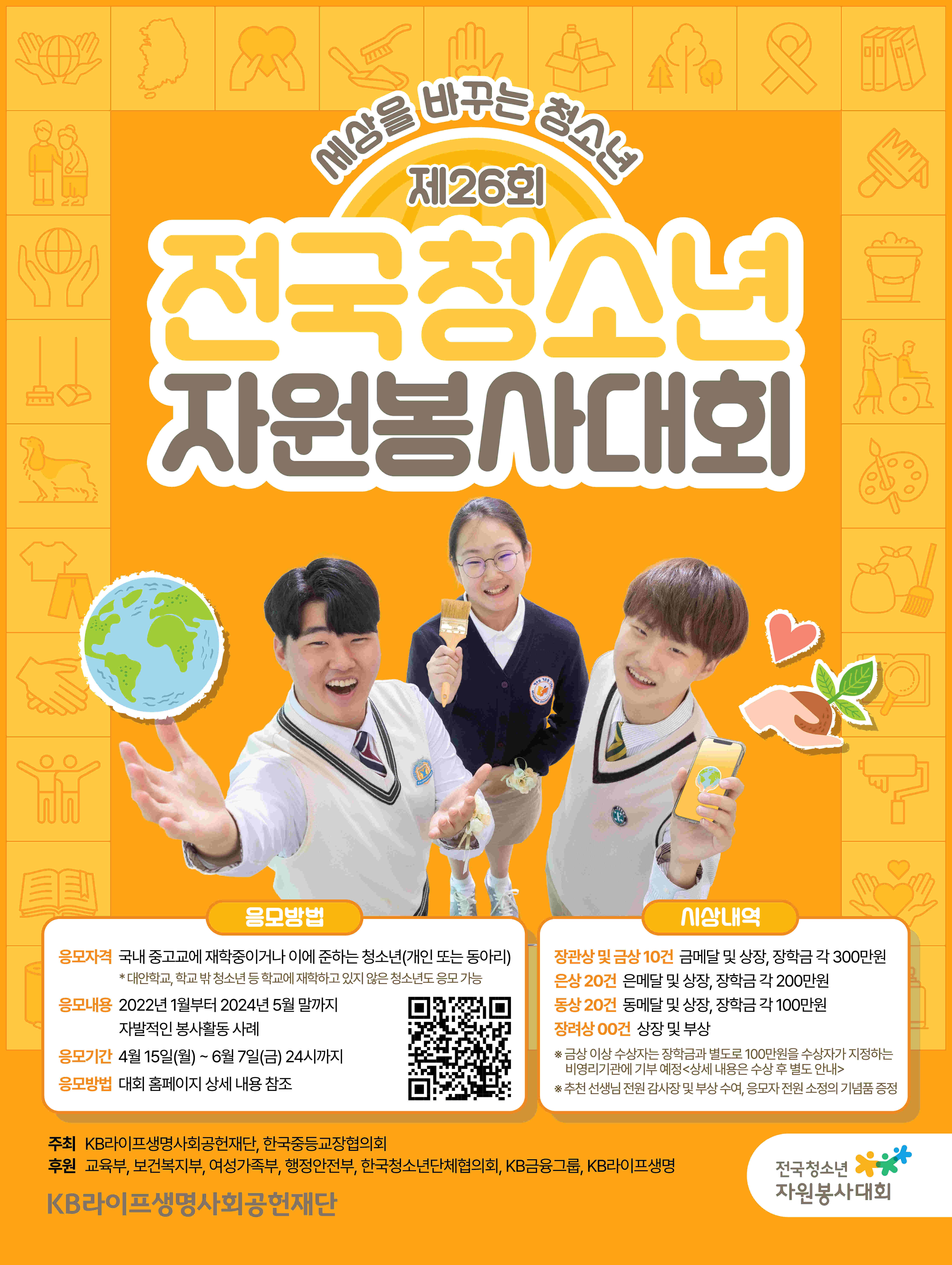 KB라이프생명사회공헌재단이 한국중등교장협의회와 함께 운영하고 있는 전국청소년자원봉사대회(구. 전국중고생자원봉사대회) 안내.
