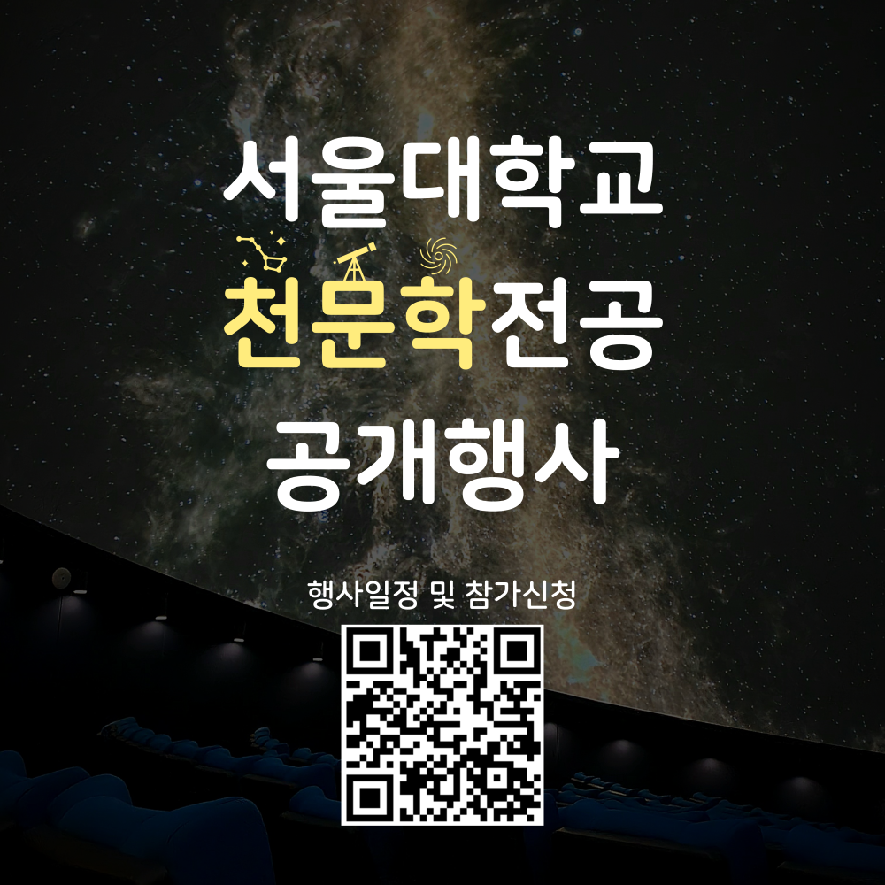 서울대학교 자연과학대학 물리·천문학부 천문학전공에서는 중·고등학생들을 포함한 일반인도 천문학을 접할 수 있는 기회를 제공하기 위해 공개행사를 진행하고 있습니다.